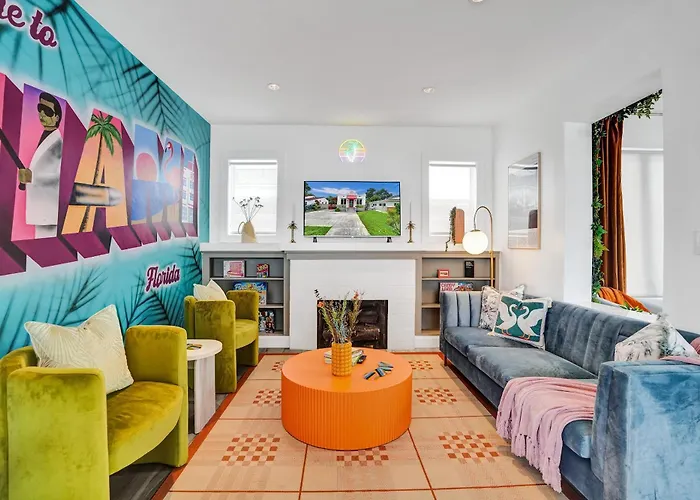 Situata a 3 km dalla Patricia and Phillip Frost Museum of Science, 5 Mins Brickell - Pool & Billiards - Retro Miami Villa vanta una piscina esterna con una piscina con trampolino. Dotato di accesso a un patio soleggiato, questa villa si trova a 5 minuti in macchina dai HistoryMiami.